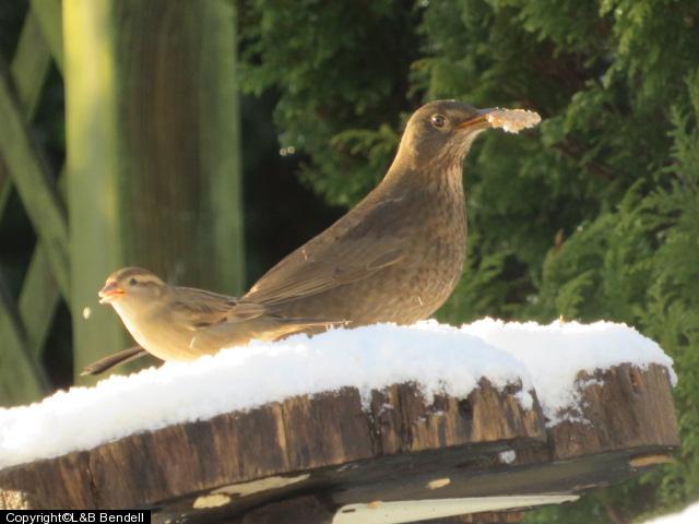 - 18 - Feeding on snow melted ground at rear of Mill Road health centre,with Blackbirds.