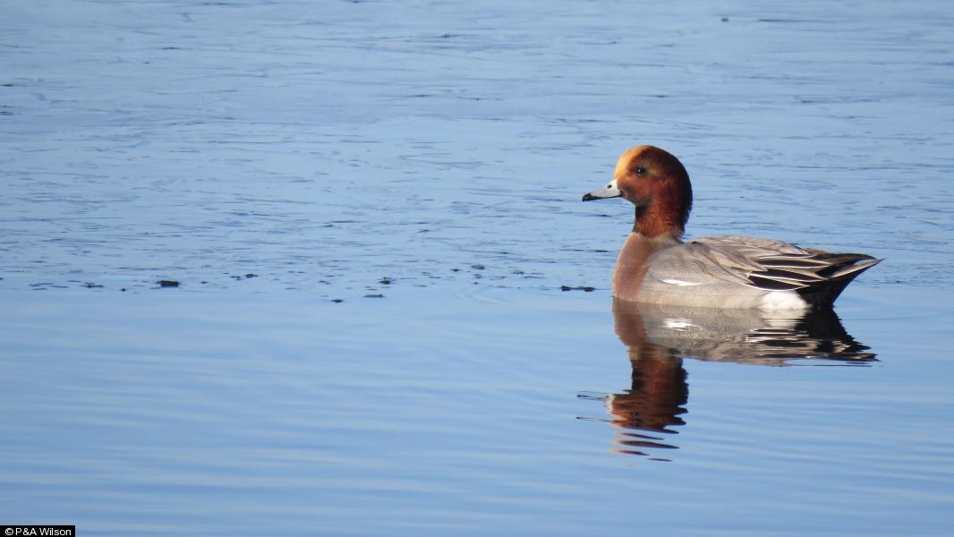 - 14 - 14 adults on small lake at 10:10 ; Wigeon - 100+ ; Tufted Duck - 56+ ; Pochard - 130+ ; Goldeneye - 7 ; Cormorant - 2 ; Herring Gull - 115+ ; Grey Heron - 5 ;