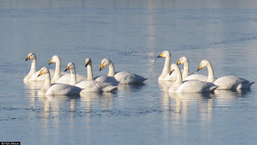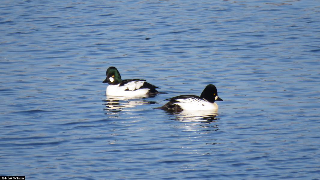 Goldeneye - 8 - 4 males ; Lapwing - 36 ; Great Black-backed Gull - 38 - Roosting on ice ; Lesser Black-backed Gull - 7 ; Herring Gull - 316 ; Goosander - 30 - Lots of display