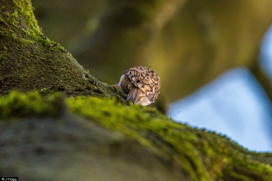Tawny Owl - 1 - perched in eucalyptus tree till dusk