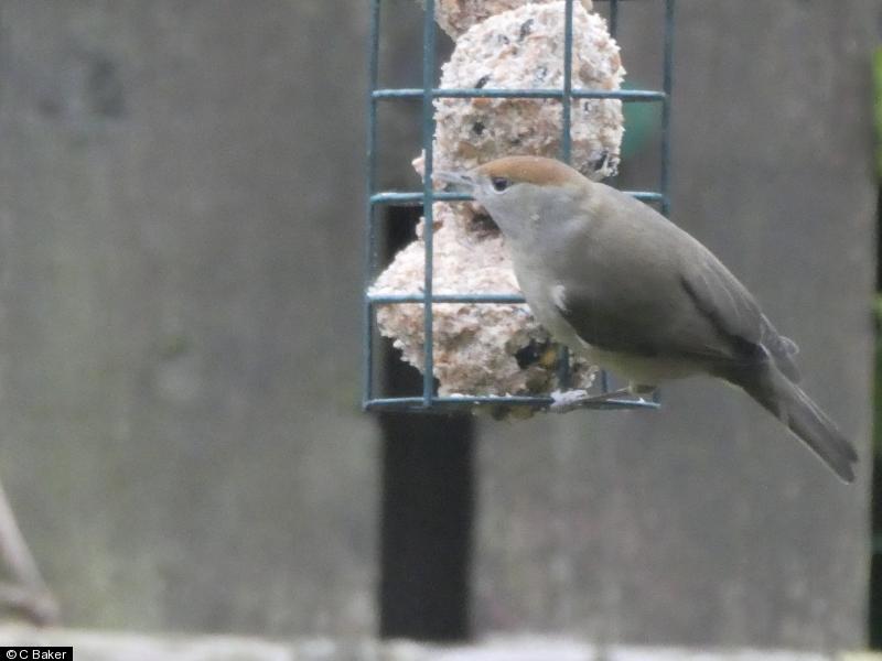 Blackcap - 2 - 1 male and 1 female on bird feeder ; Greenfinch - 1 - 1 male on bird feeder