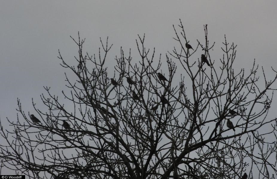- 1+ - possibly 2 ; Raven - 2 - 2 flyover towards Blackamoor cronking ; Greenfinch - 16 ; Bullfinch - 2 - 2 males calling from treetops. ; Sparrowhawk - 1 - Female attempting kill at feeders then flew low towardsTotley Moss ; Fieldfare - 40 - Approx 40 feeding in fields Top of Moss Road Edge of Blackamoor