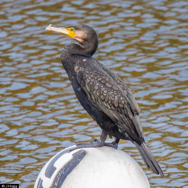 Peregrine - 2 - adult pair harassing FPs over site @ 0755hrs then loafing on chimneys ; Cormorant - 11 - max, on pylon