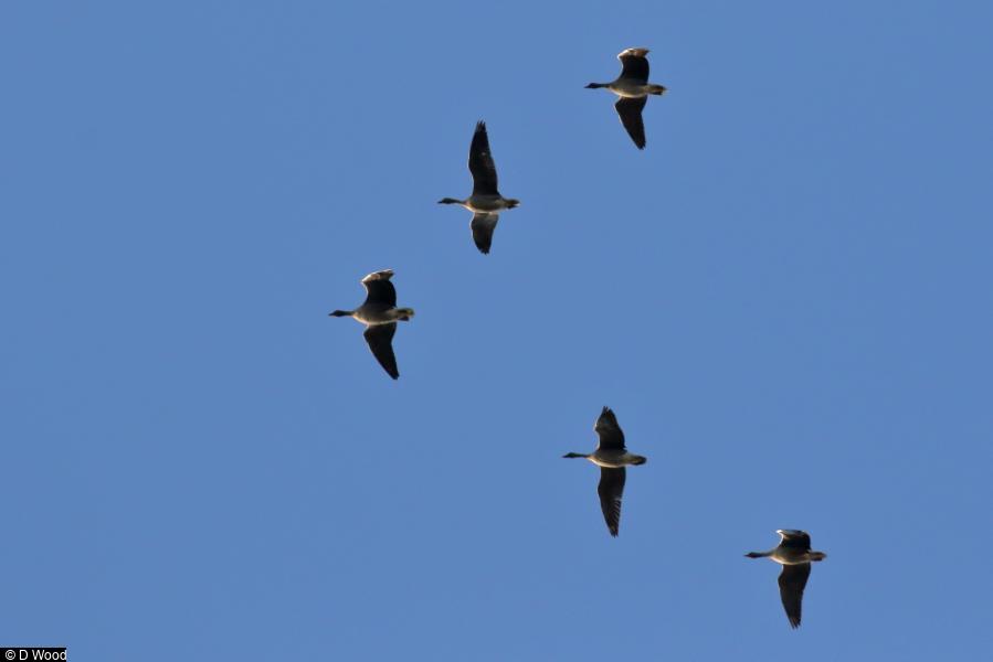 - 660 - east in 7 skeins from around 08:20 - 09.40 hrs ; Peregrine - 1 - hunting over Bottom Res ; Kestrel - 5 - in general area ; Stonechat - 2 ; Chiffchaff - 18 - still present around reservoir perimeter ; Siskin - 5 ; Lesser Redpoll - 2 - flew NE - first of autumn ; House Martin - 2 - flew W ; Swallow - 1 - flew W ; Meadow Pipit - 25 - flock on walls along conduit