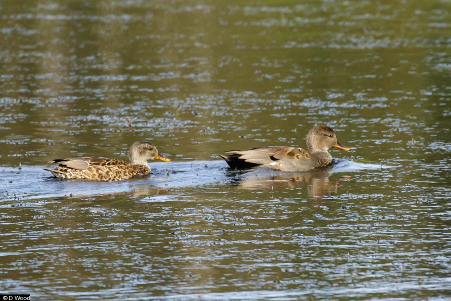Gadwall - 39 - At N end. ; Tufted Duck - 13 - 12 at S end ; 320 - 1 - Fem at N end ; Mute Swan - 4+ - 2 pairs, each with 5 fully grown cygnets ; Jay - 1 - Flew across lake ; 324 - 1 - Southern Hawker at S end ; Sand Martin - 6 - Hawking insects at S end ; Gadwall - 39 - photo ; Gadwall - 39 - another photo