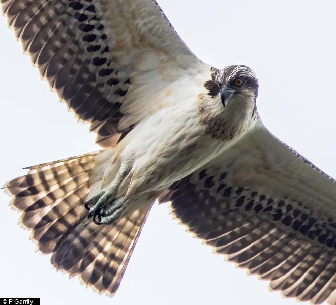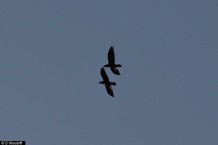 Peregrine - 1 - adult, probably female, on safety rail from 0745hrs. Displaced by BZ which it mobbed noisily. Returned to rail later ; Common Buzzard - 1 - settled on safety rail before chased off by PE
