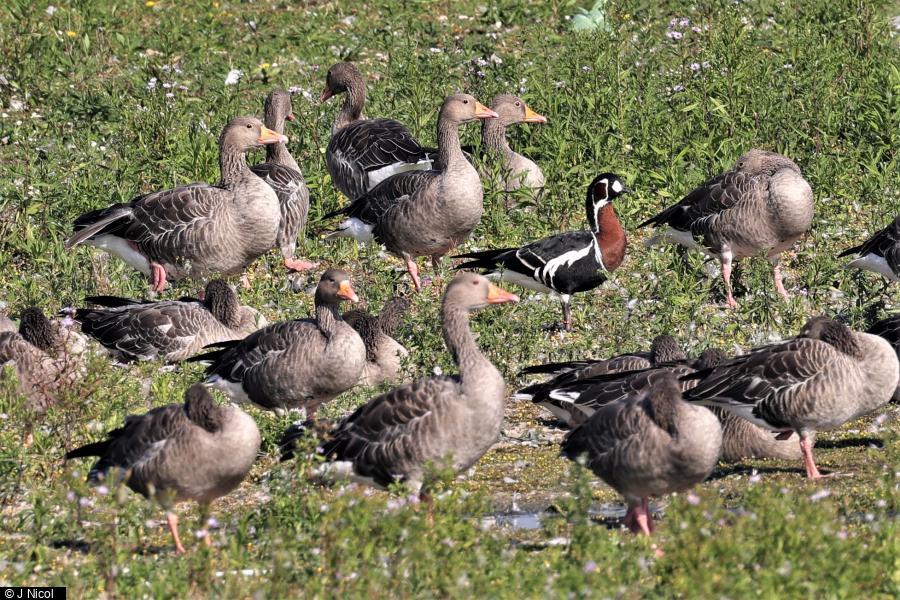320 - 2 ; Common Sandpiper - 2 ; VARIOUS ESCAPED SPECIES - 1 - ringed RED-BREASTED GOOSE with 50+ Greylag Geese