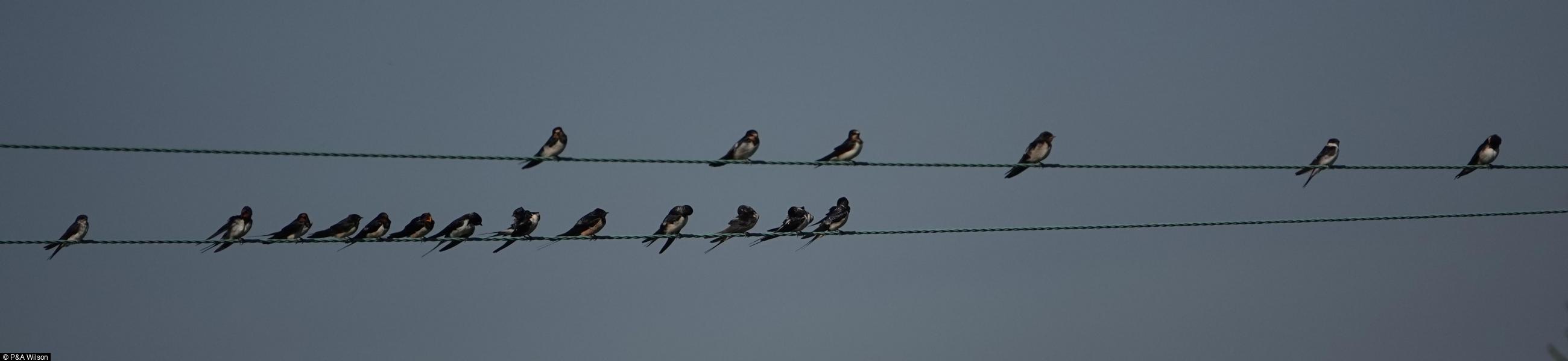 Swallow - 30 ; Starling - 100 ; House Martin - 15 ; 319 - 1 ; Cormorant - 1 ; Meadow Pipit - 1