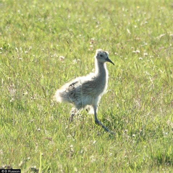 Curlew - 2 - One adult and chick in horse fields, possibly a week or so old. Photographed from the path.