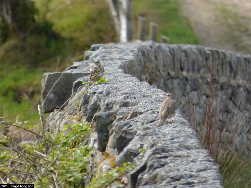 Mistle Thrush - 2 - pair, one with white patch on right wing ; Stonechat - 2 - pair ; Tree Pipit - 2 - pair with male displaying ; Tree Pipit - 2 - another photo ; Cuckoo - 1 - heard N ; Wheatear - 2 - pair ; Reed Bunting - 1 - singing ; Jackdaw - 1 - over E