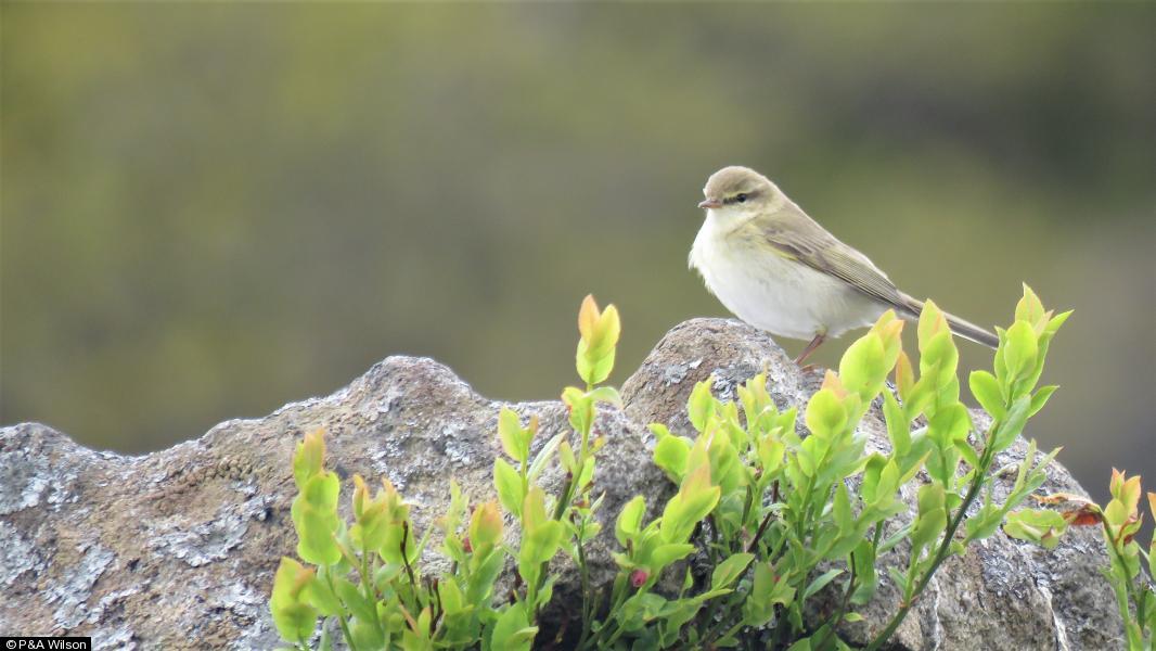 Ring Ouzel - 2 - Males, seen together ; Wheatear - 1 - Female ; Stonechat - 4 - 1 Female, 3 Males ; Willow Warbler - 2 ; Willow Warbler - 2 ; Whinchat - 2 ; Meadow Pipit - 8 ; Cuckoo - 1 - Heard from plantation
