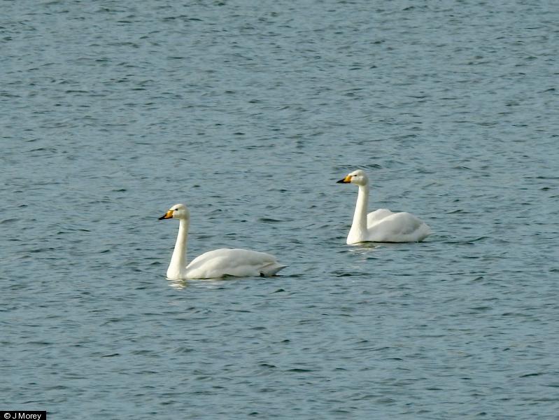 - 87 - Flew north at 07:42. Two dropped onto Small Lake much to the annoyance if the resident Mutes, ; Little Ringed Plover - 2 ; Goosander - 4 ;