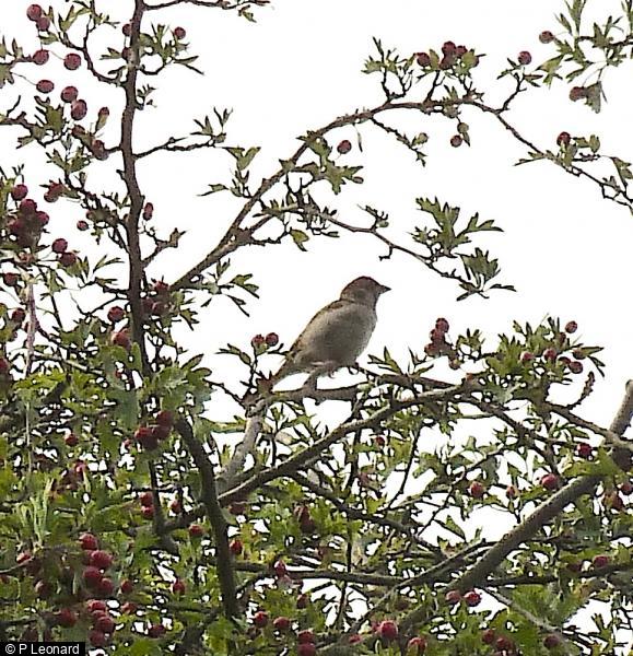 Collared Dove - 11 - on adjacent wires ; Kestrel - 3 - on adjacent field; family party? ; Chiffchaff - 3 ; House Martin - 5+ - over ; Greenfinch - 1 ; Red-legged Partridge - 1 ; Blackcap - 1 - calling ; Tree Sparrow - 1 - calling from top of Hawthorn. A totally unexpected encounter with a seriously declining species (record shot).