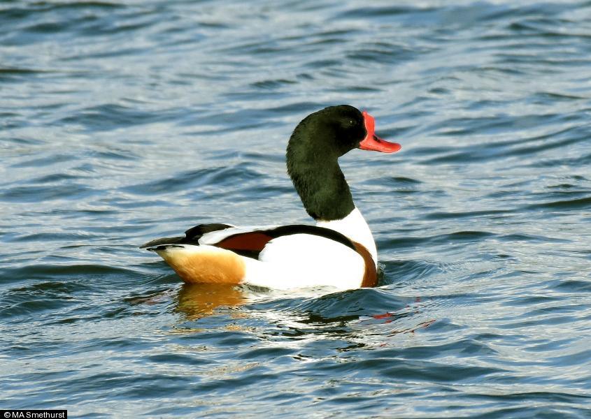 Shelduck - 1 - male on big lake at 0840 ; Sand Martin - 1
