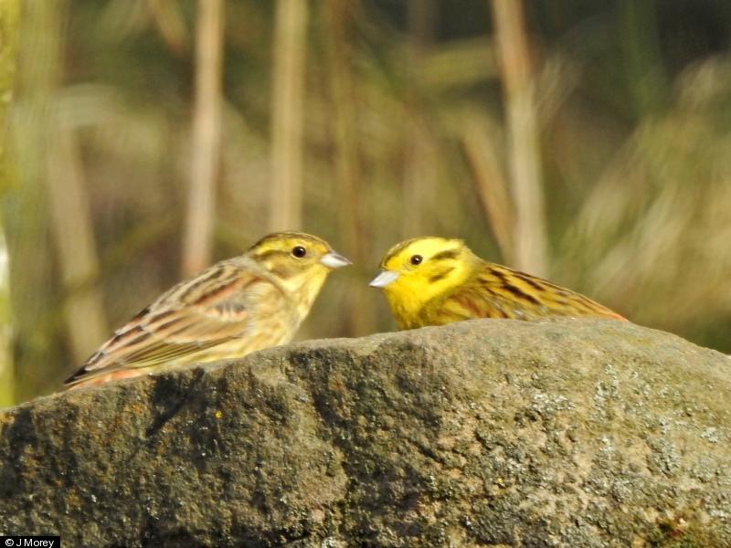 Blackcap - 1 - male in garden ; Reed Bunting - 1 - m in garden, rare here ; Siskin - 2 - m&f at feeders