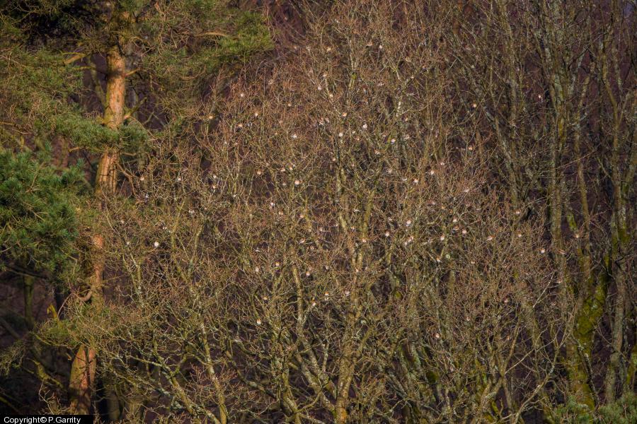 - 300+ - Huge noisy flock. A single flock split up into a few smaller ones. ; Raven - 1 ;
