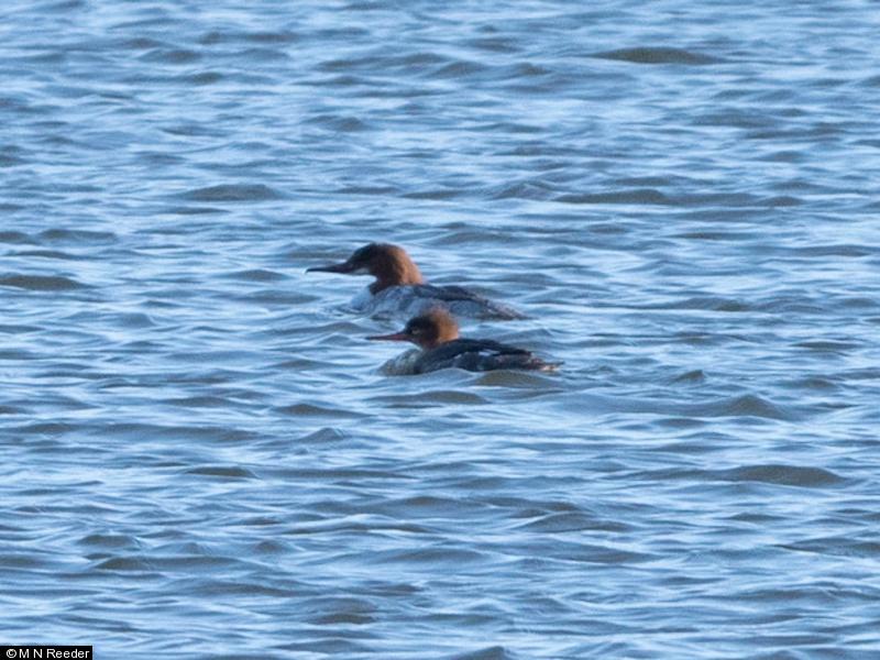 Green Woodpecker - 1 ; Goosander - 5 - all female/first winter ;