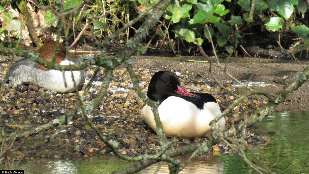 Goosander - 1pr - feeding actively @ 0755hrs
