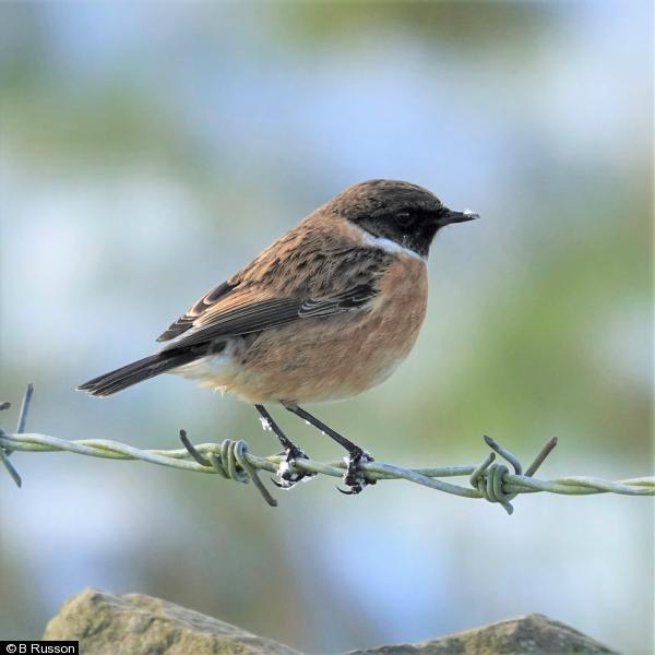 Stonechat - 2 - 2 males along roadside walls ; Lapwing - 42 - in roadside fields with c100 starlings ; Stonechat - 2 - another photo
