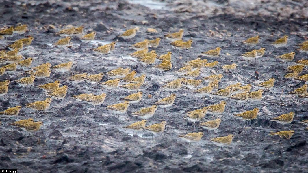 Curlew - 1 ; Lapwing - 25 ; Golden Plover - 300 - 400 ; Golden Plover - 300-400 - Another photo
