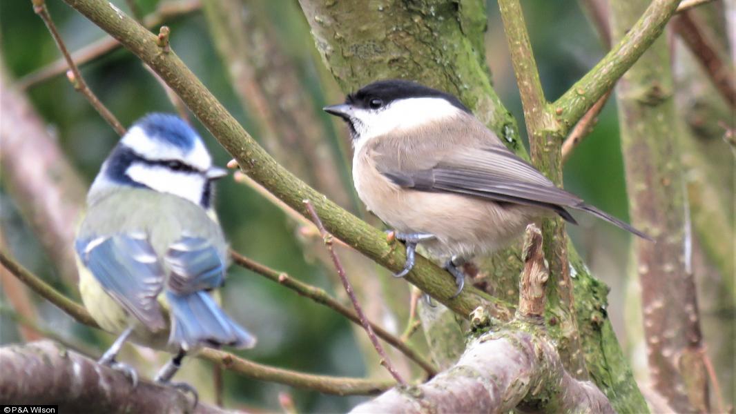 - 8 ; Blackbird - 17 - 11 Males 6 Fem across site.11:55- 12:55 ; Bullfinch - 2 ; Chaffinch - 1 ; Goldfinch - c15 ; Sparrowhawk - 1 ; Magpie - 25+ ; Carrion Crow - 5 ; House Sparrow - 5 - near feeders. ; Kingfisher - 1 - on top pond