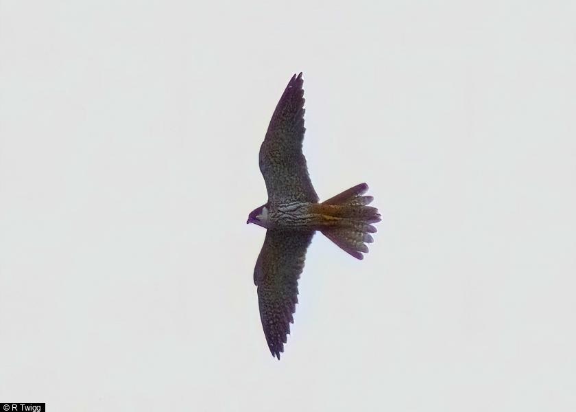 - 1 - High over reservoir at 16:00 being chased by 2 Ravens and a Peregrine