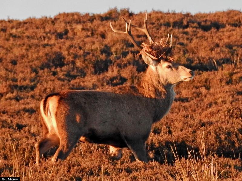 Raven - 2 ; Lesser Redpoll - 5 ; Stonechat - 2 ; 324 - 20+ - Red Deer, including a stag with a natty bracken hat.