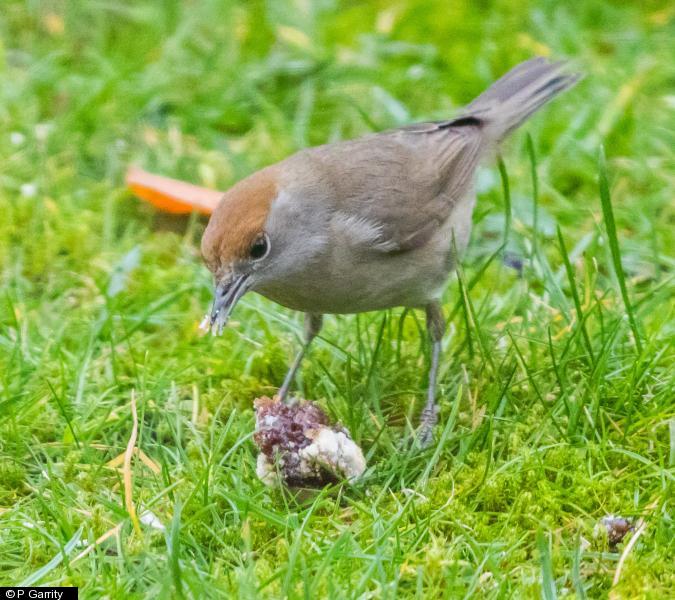 Blackcap - 1 - Female to mince pies again ; Blackcap - 1 - photo