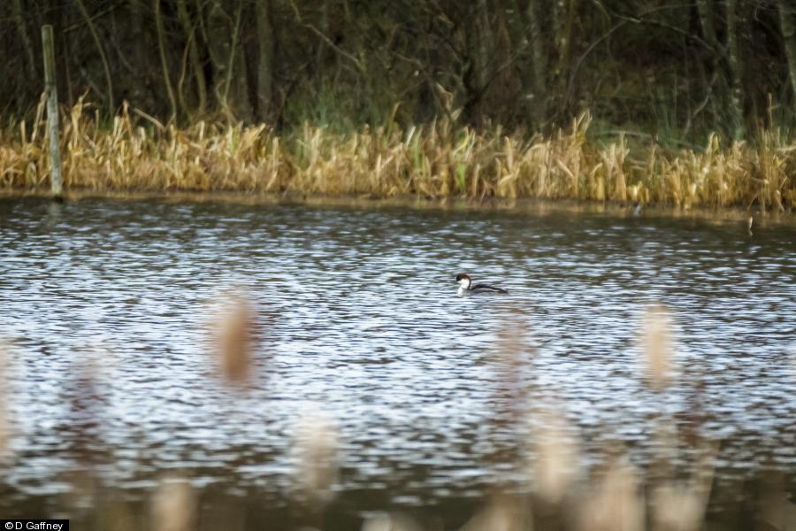 Coot - 90+ ; Tufted Duck - 30+ ; Gadwall - 30+ ; Wigeon - 120+ ; Pochard - 20 ; Goosander - 3 ; Goldeneye - 6 ; 320 - 20+ ; Great Crested Grebe - 8 ; Little Grebe - 1 ; Cormorant - 32 ; Grey Heron - 5 ; Common Gull - 1 ; Herring Gull - 8 ;