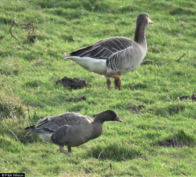 - 3+ - in a flock of starlings ; Fieldfare - 1+ - same flock of starlings ; Canada Goose - 4+ - spooked starlings, fieldfare & redwings ;