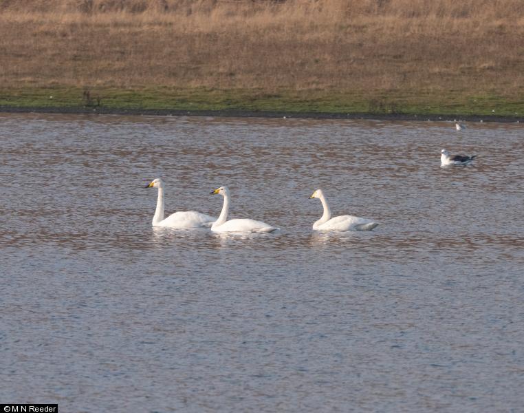 - 3 - 3 adults on Big Lake from at least 10:30 ; Shelduck - 5 ; Wigeon - 25 ; Gadwall - 30 ; Shoveler - 2 - Pair on small lake ;