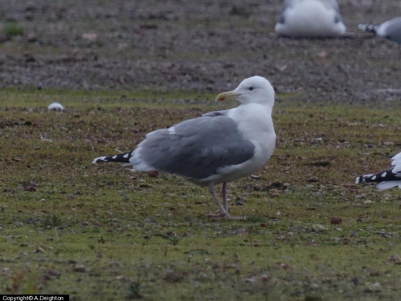 - 2 - ad and 1w loafing on waste ground 13:30 ; Great Black-backed Gull - c190 - loafing ; Herring Gull - c156