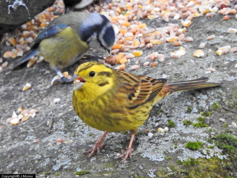 Yellowhammer - 10 - Together in a small flock ; Yellowhammer - 10 - another photo ; Great Spotted Woodpecker - 1 ; Coal Tit - 6