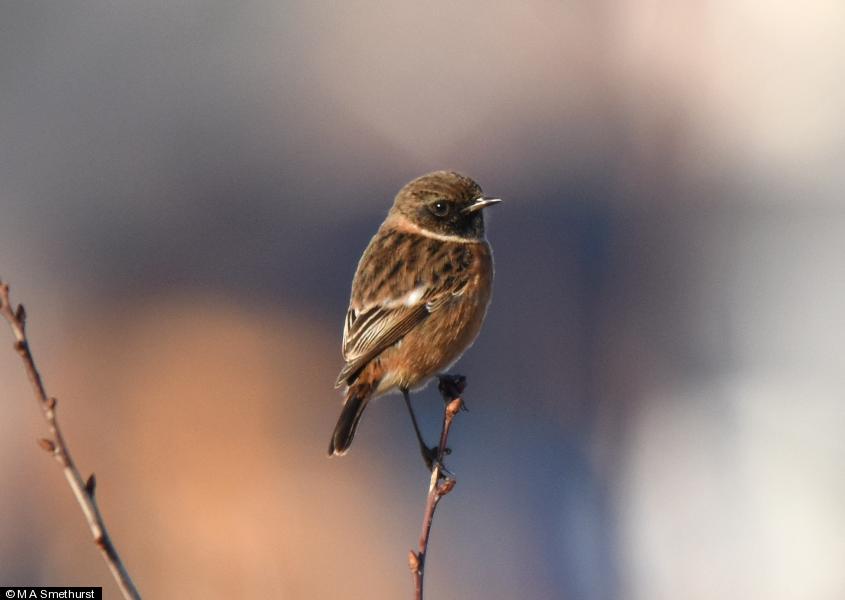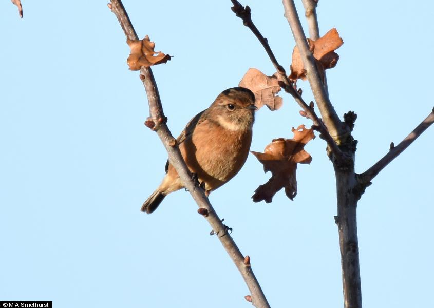 Stonechat - 2 - M/F in saplings between river and big lagoon. ; Stonechat - 2 - second photo