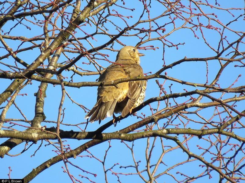 Grey Heron - 4 - Three by the river and one over. Most I've ever seen in the Park at one time. ; Mistle Thrush - 1 - Singing