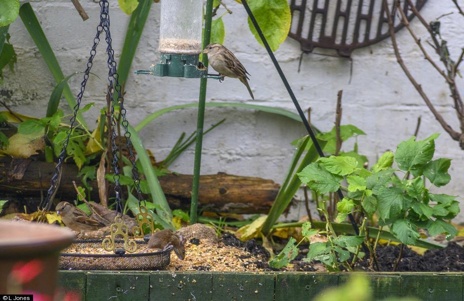 House Sparrow - 10+ - Several coming to garden feeders every day with a visitor ..wood mouse..