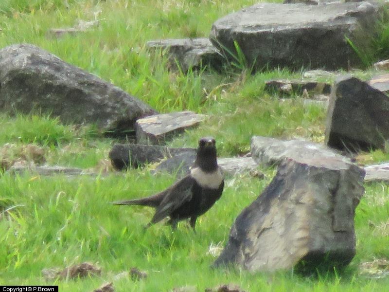 319 - 3 ; Raven - 1 ; Swallow - 20+ - mostly SSW ; House Martin - 2 ; Meadow Pipit - 25+ - Feeding in close cropped horse field. ; Ring Ouzel - 1 - In amongst the Meadow Pipit flock. ; Stonechat - 2 ; Chiffchaff - 3