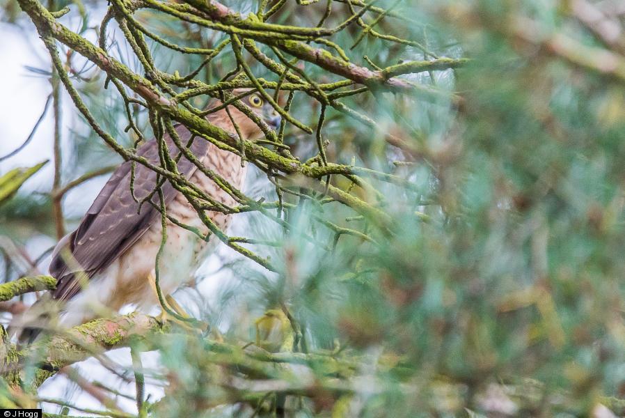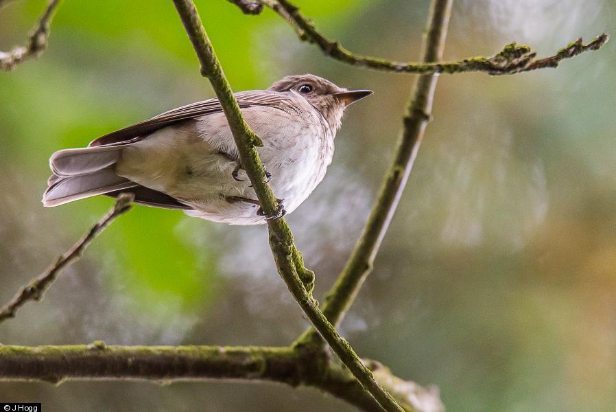 Sparrowhawk - 1 - Unfortunately obscured by branches ; Spotted Flycatcher - 1 ; Robin - 3