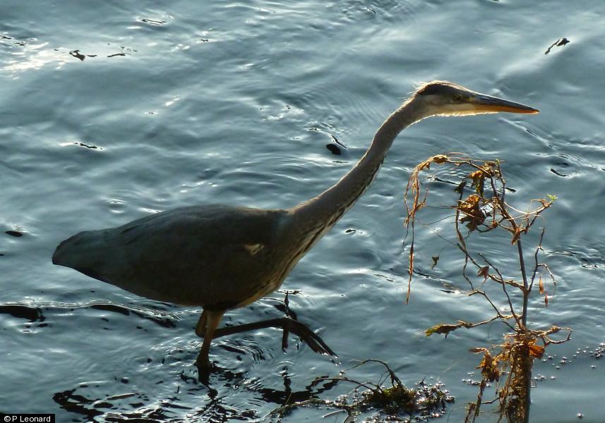 Grey Heron - 1 - juv/1cy fishing @ 0800hrs