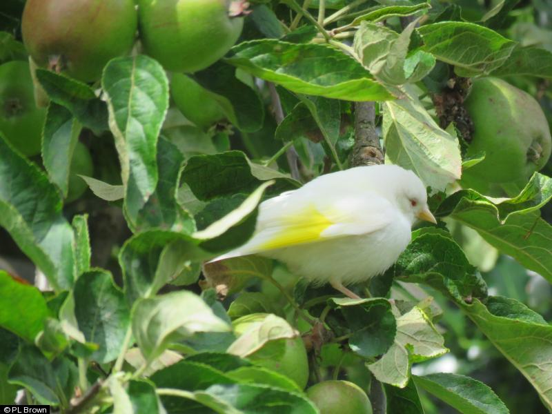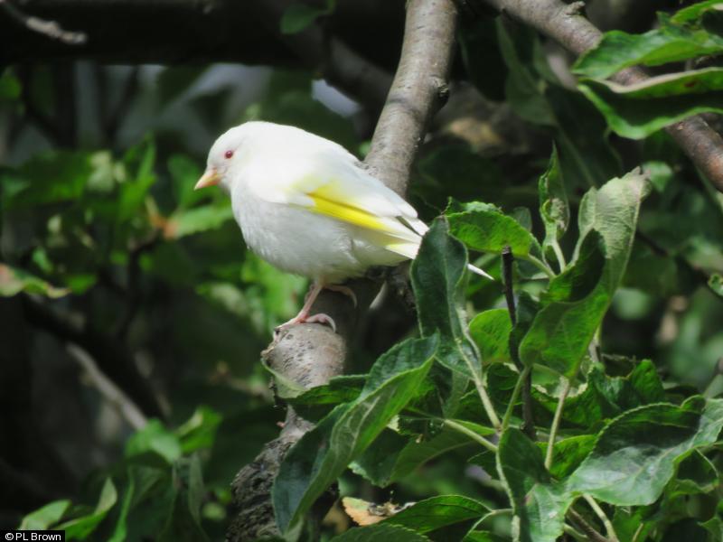 Goldfinch - 6 - Family party including albinistic juv. apparently not able to get on to the feeders. ; Goldfinch - 6 - Another picture of albinistic juv.