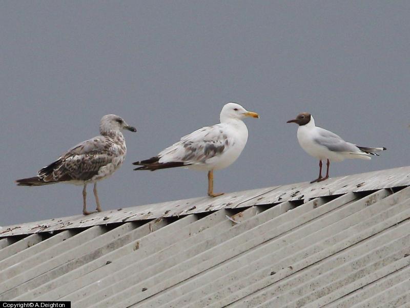 Whitethroat - 3 - ad and 2 recently fledged ; Black-headed Gull - 30 - c. ; Lesser Black-backed Gull - 65 - c. on Top Res ;