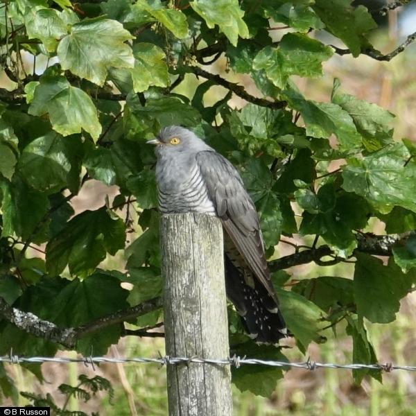 Lapwing - 14 - 14 chicks counted in horse fields ; Cuckoo - 1 - calling and perched near horse fields ; Lapwing - 2 - pair with 3 young along the conduit