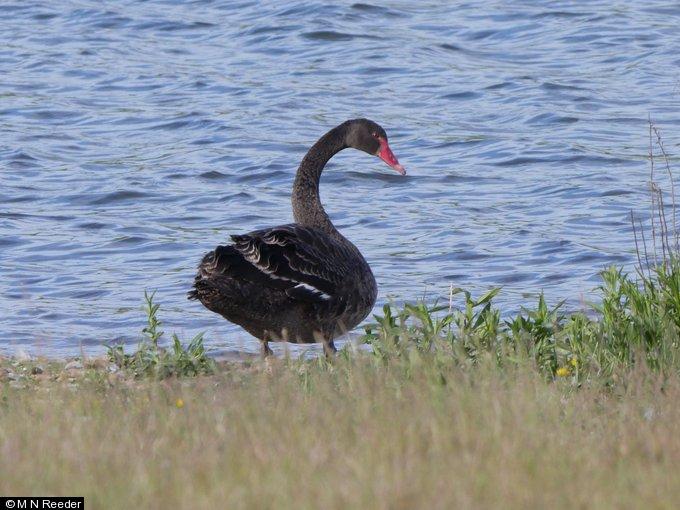 Moorhen - 4 - 2 adults large Res. 2 chicks small Res. ; Coot - 1 ; Mallard - 1 - Male. ; Gadwall - 2 - Pair still present. ; Black-headed Gull - 4 - Over. ; Pied Wagtail - 1 - On road. ; Sparrowhawk - 1 - Female mobbed by Swallows. ; Swift - 2 ; Swallow - 8+ - Over water and mobbing SH. ; Reed Warbler - 2 - Singing. ; Sedge Warbler - 1 - Singing. ; Blackcap - 3 ; Willow Warbler - 1 ; Chiffchaff - 2 ; Whitethroat - 1 ; Chaffinch - 1 - Singing Male. ; Song Thrush - 1 - Singing. ; Long-tailed Tit - 20+