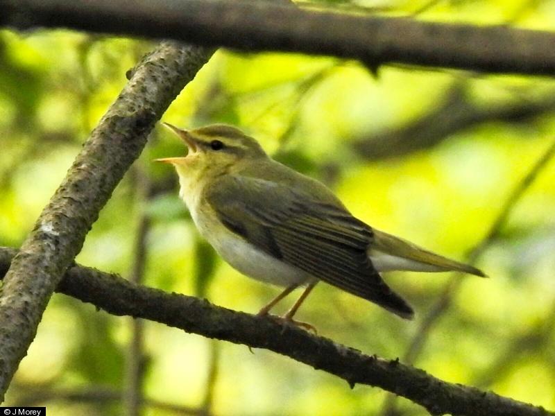Redstart - 3 - pair and another singing male ; Spotted Flycatcher - 1 ; Pied Flycatcher - 2 - males ; Tree Pipit - 1 - Singing and displaying just over the road on Ramsley Moor ; Treecreeper - 4 ; Song Thrush - 4 ; Jay - 1 ; Garden Warbler - 1 ; Blackcap - 3 ; Willow Warbler - 5+