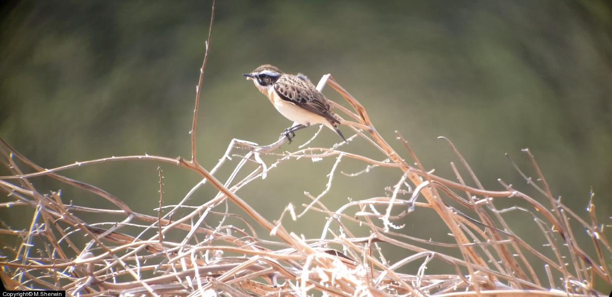 Stonechat - 1 - Male catching insects in mid-air. ; Meadow Pipit - 10