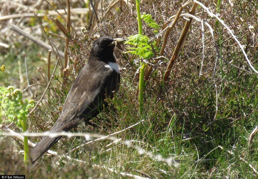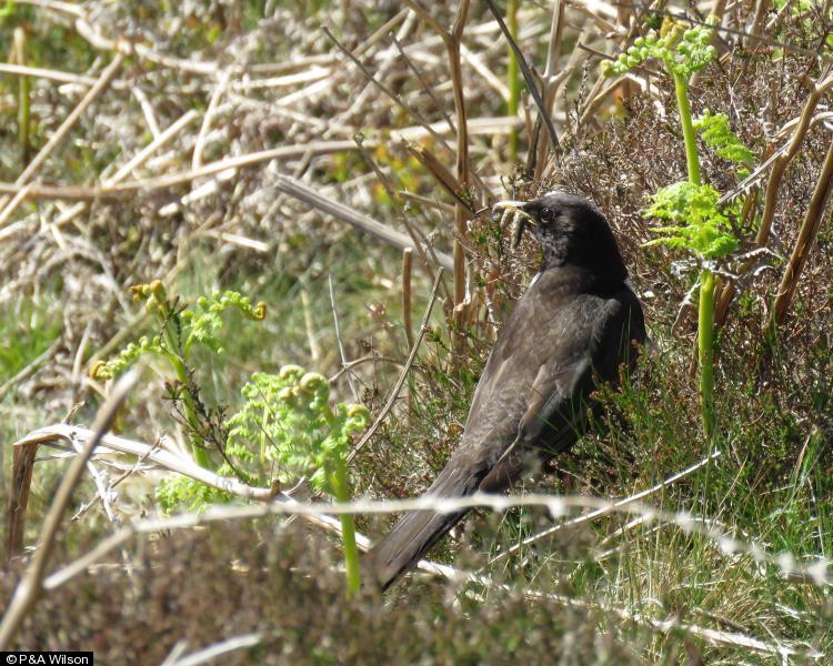 Cuckoo - 1 - heard ; Meadow Pipit - 6+ ; Ring Ouzel - 2 - 2m, one carrying food ; Whinchat - 1 - male ; Willow Warbler - 3+ - heard ; Wren - 1 ; Kestrel - 1 - hovering, then dived and flew off carrying something