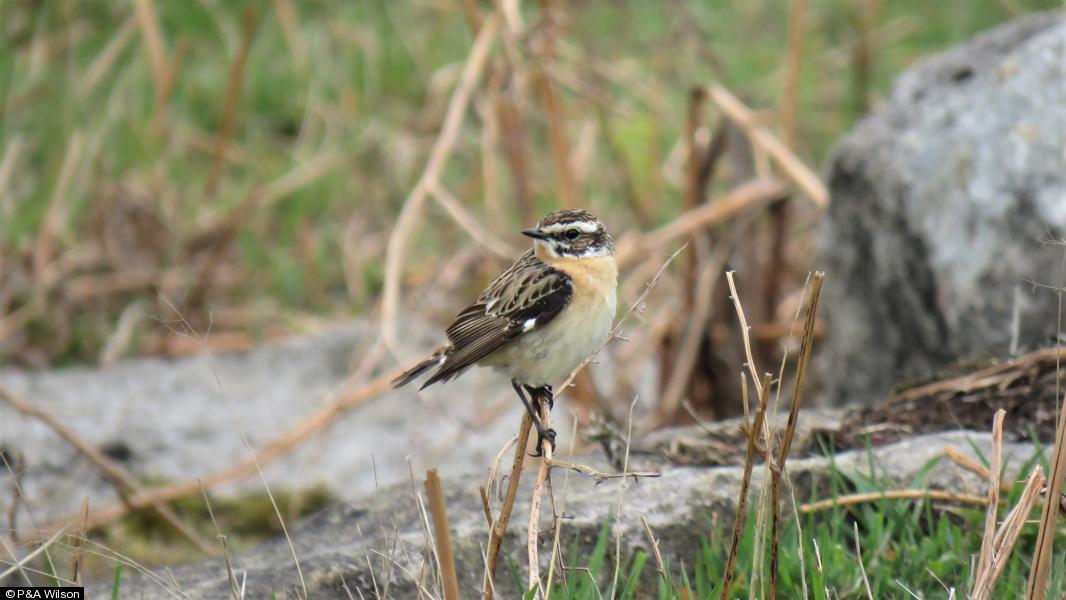 Ring Ouzel - 1 ; Whinchat - 2 - M&F ; Whinchat - 2 - Male ; Willow Warbler - 2 ; Cuckoo - 2 - Heard calling at the same time from different places ; Meadow Pipit - 3 ; Kestrel - 1