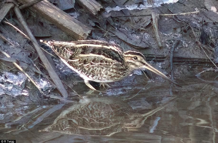 Snipe - 5 - one on stream to flash and 4 of the river bank. In snowy conditions. ; Jack Snipe - 6 - 2 in stream to flash and 4 on the river bank in snowy conditions.