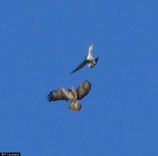 Mistle Thrush - 1pr - on playing field ; Song Thrush - 1pr - on playing field ; Chiffchaff - 1 - calling ; Pheasant - 1 - crowing ; Kestrel - 1 - male ; Blackcap - 1 - singing ; Whitethroat - 1 - singing ; Sparrowhawk - 1 - f, displaying over ; Common Buzzard - 2 - soaring over, one subjected to spectacular aerial assault by PE (record shot) ; Peregrine - 1 - adult, calling from pylon, saw off 2 BZ ; Rook - 12prs - occupied nest on end of each arm of 2 pylons ; Goldcrest - 1 - singing