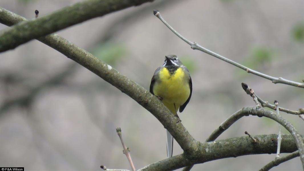 Canada Goose - 2 - M&F on lower pond ; Mandarin - 9 - M&F ; Grey Wagtail - 2 ; Long-tailed Tit - 2